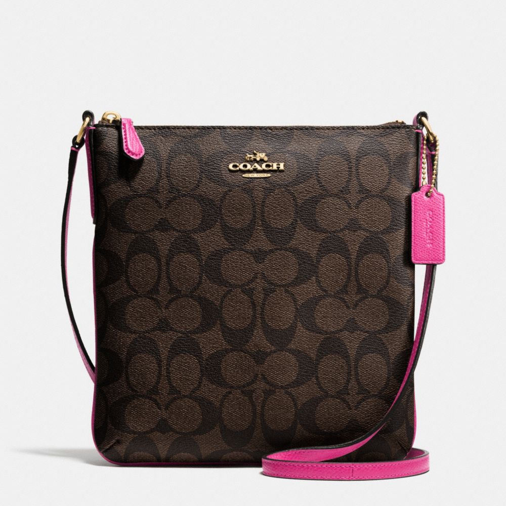 1. COACH f35940 - NORTH/SOUTH CROSSBODY IN SIGNATURE - IMITATION GOLD/BROWN/PINK RUBY
