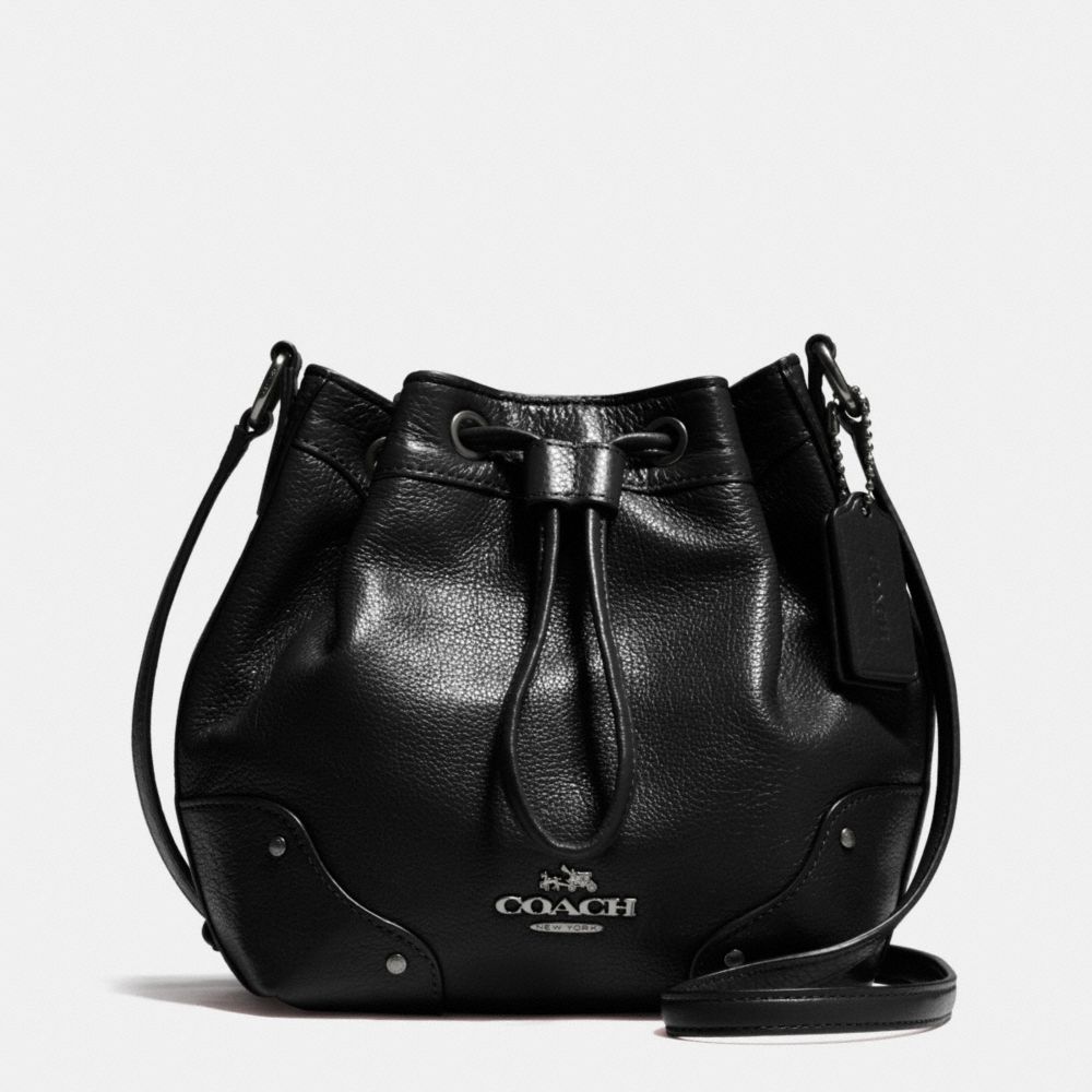 COACH F35363 - BABY MICKIE DRAWSTRING SHOULDER BAG IN GRAIN LEATHER - ANTIQUE-NICKEL/BLACK - HANDBAGS