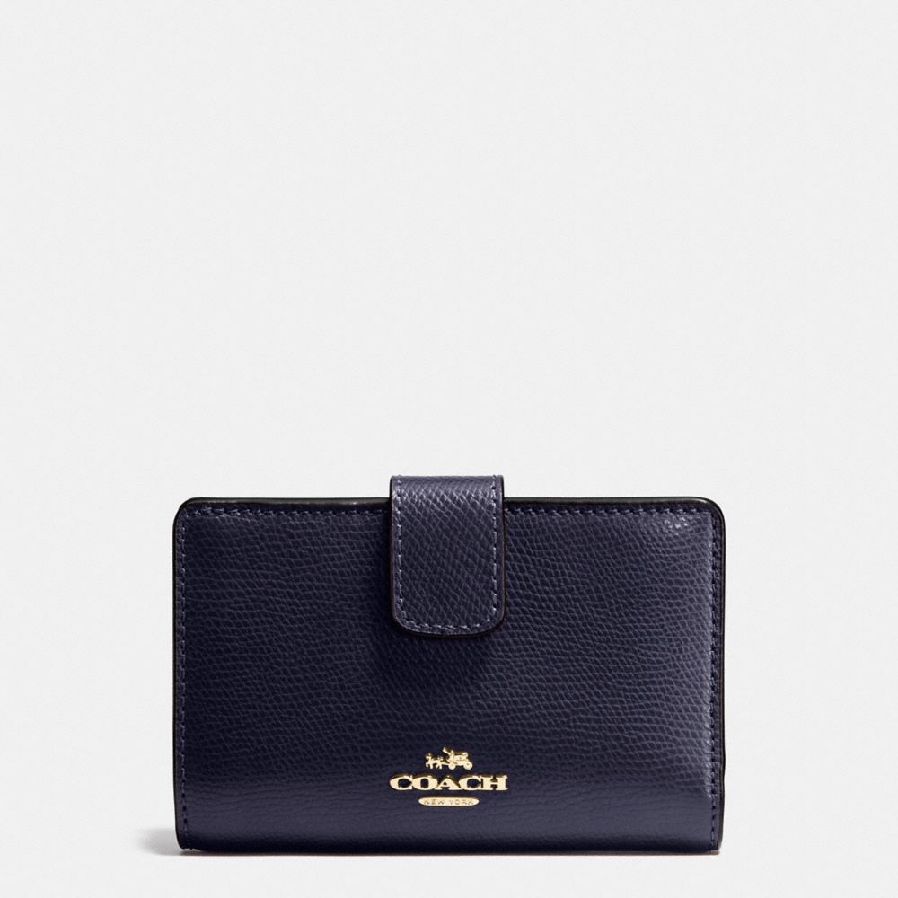 1. COACH f54010 - MEDIUM CORNER ZIP WALLET IN CROSSGRAIN LEATHER - IMITATION GOLD/MIDNIGHT