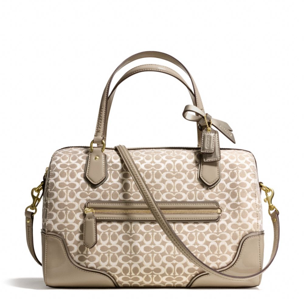 COACH F26426 - POPPY EAST/WEST SATCHEL IN SIGNATURE METALLIC OUTLINE FABRIC - BRASS/KHAKI/KHAKI (click the link before for more detail)