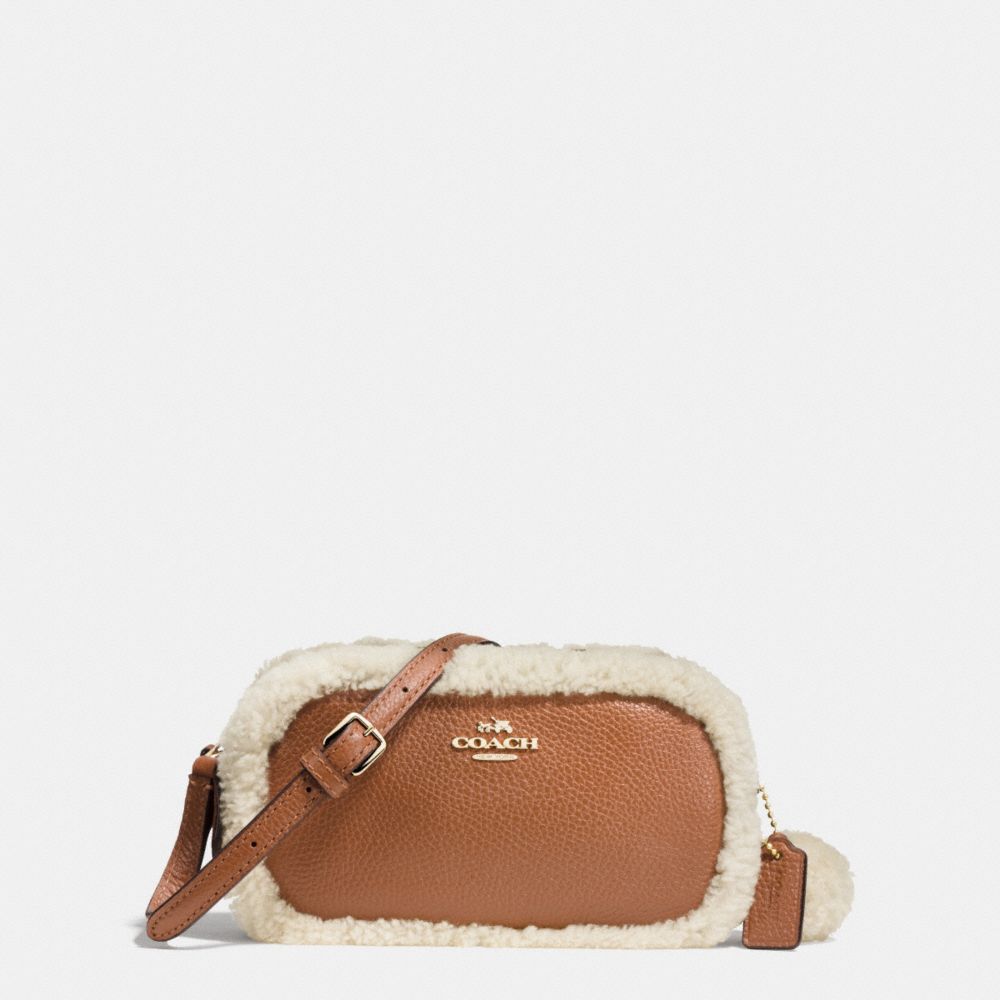 COACH F64706 - CROSSBODY POUCH IN LEATHER AND SHEARLING - IMITATION-GOLD/SADDLE/NATURAL - HANDBAGS