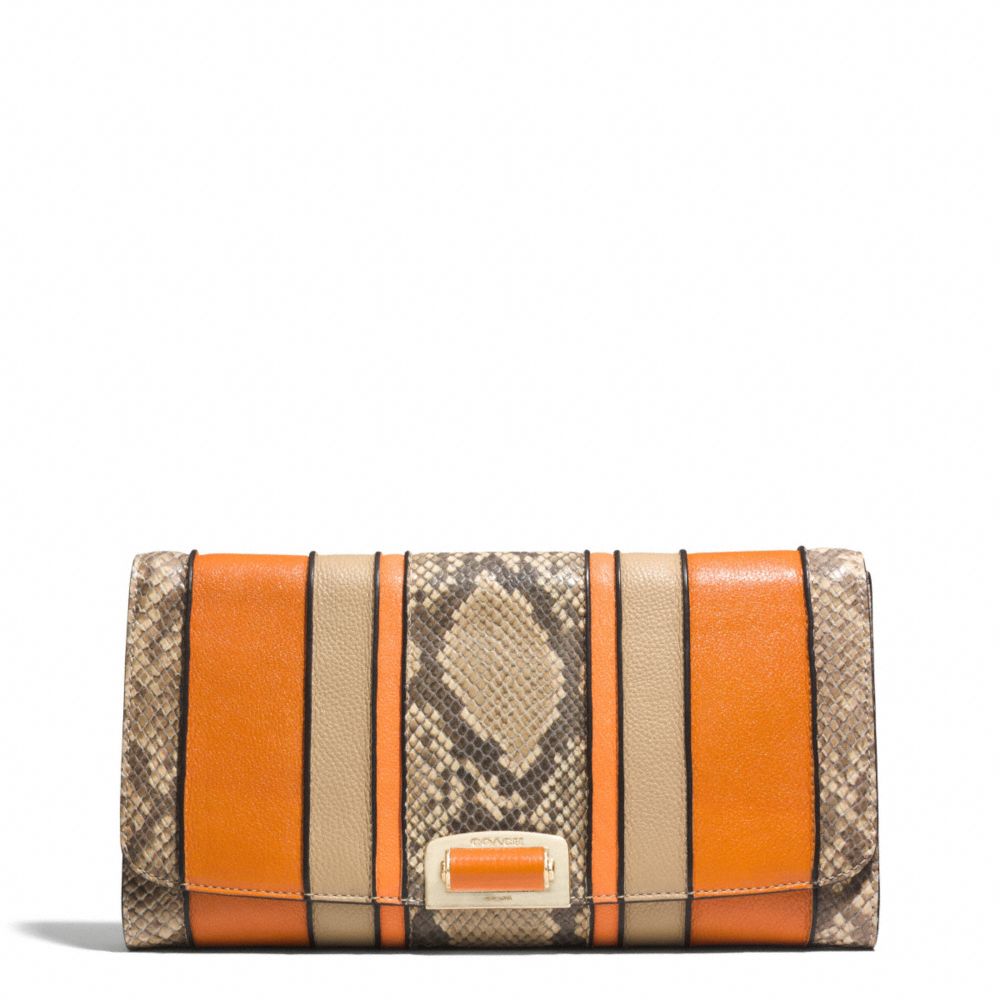 COACH F30117 - MADISON EXOTIC STRIPE LEATHER PINNACLE CLUTCH - LIGHT GOLD/NATURAL MULTI (click the link before for more detail)