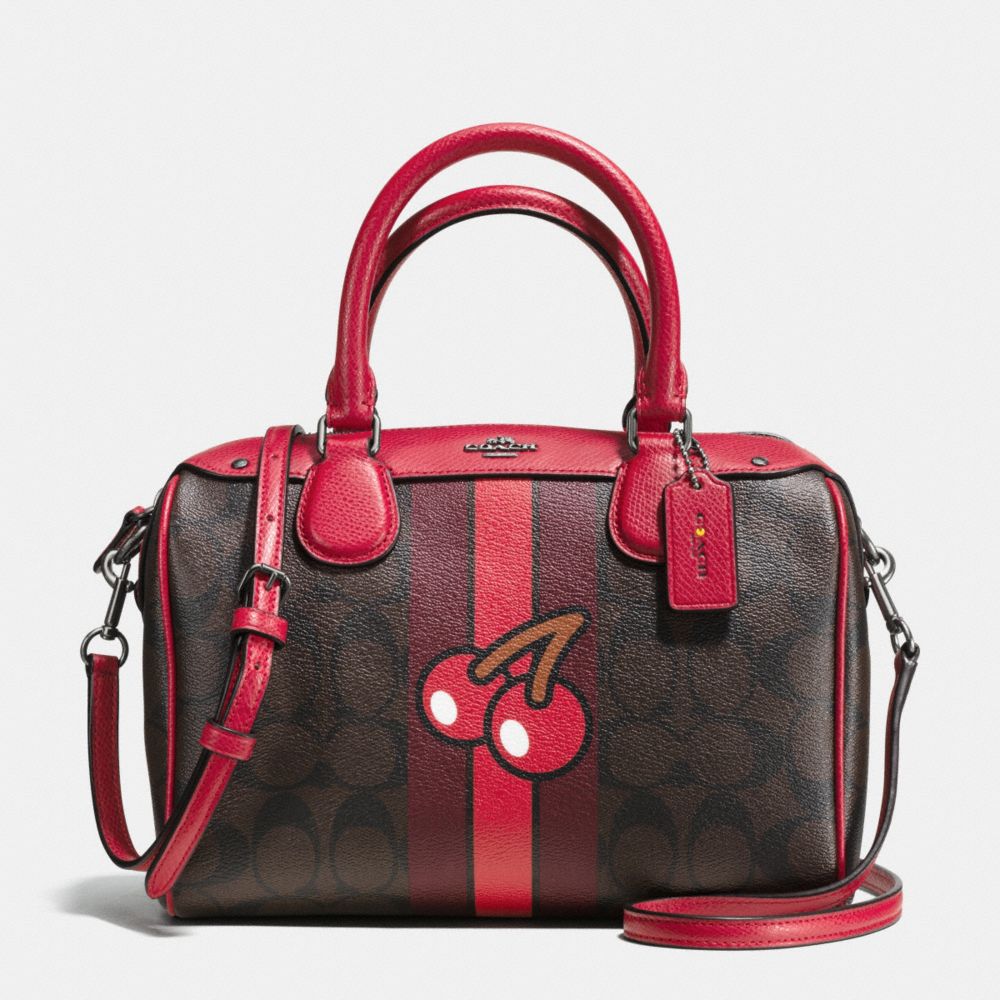1. COACH f56650 - MINI BENNETT SATCHEL IN SIGNATURE PAC MAN CHERRY PRINT COATED CANVAS - IMITATION GOLD/BROWN TRUE RED