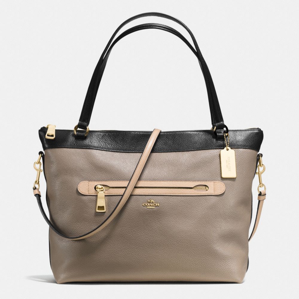 1. COACH f57210 - TYLER TOTE IN COLORBLOCK LEATHER - IMITATION GOLD/FOG BLACK MULTI