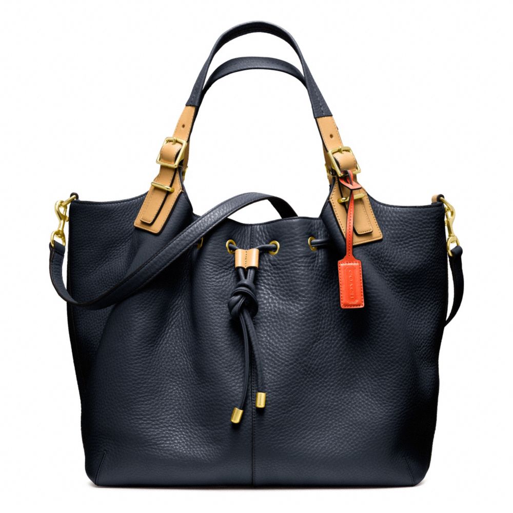 COACH F25307 - SOFT PEBBLED LEATHER DRAWSTRING XL SHOULDER BAG - BRASS/MIDNIGHT (click the link before for more detail)