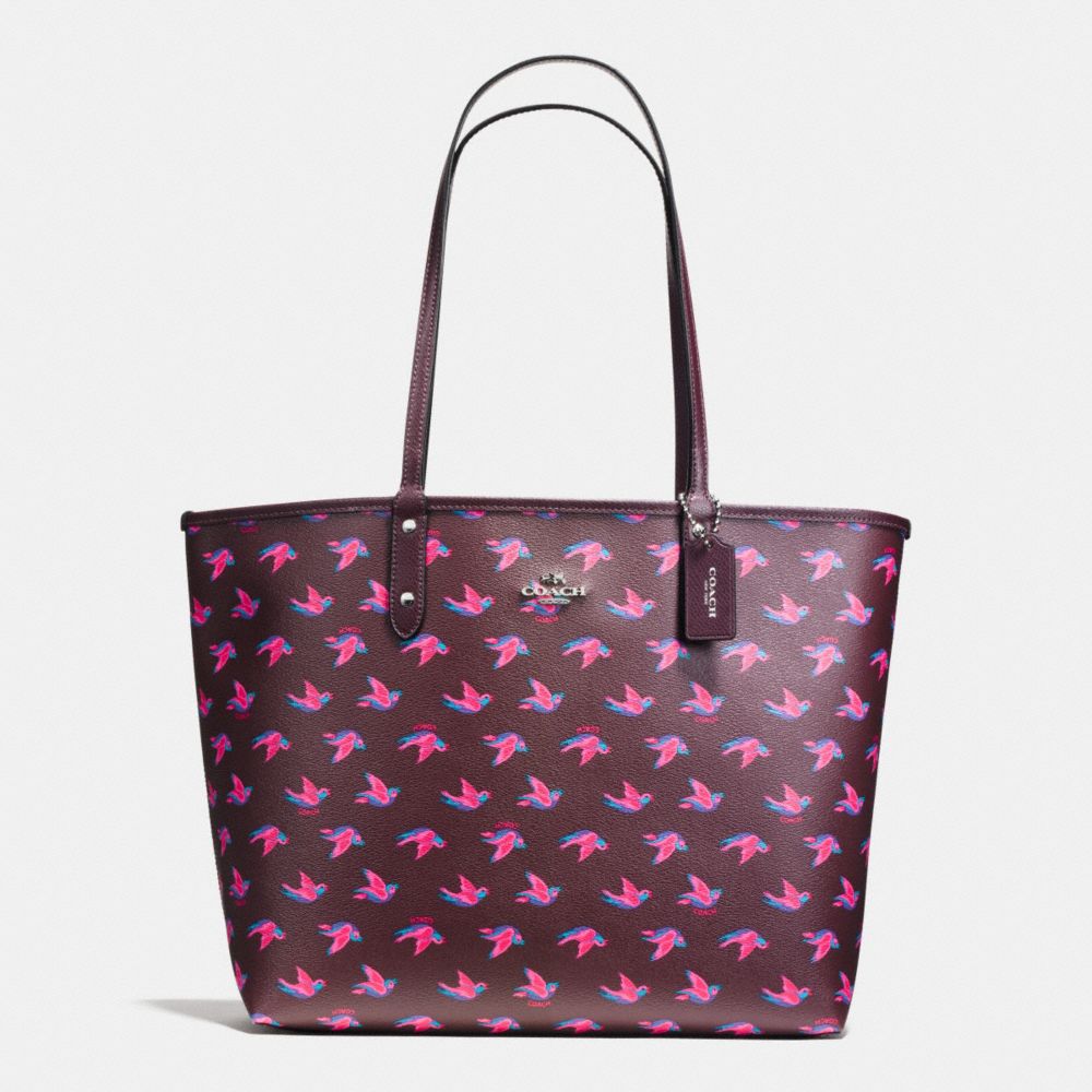 1. COACH f55870 - REVERSIBLE CITY TOTE IN HAPPY BIRD PRINT CANVAS - SILVER/BURGUNDY MULTI OXBLOOD 1