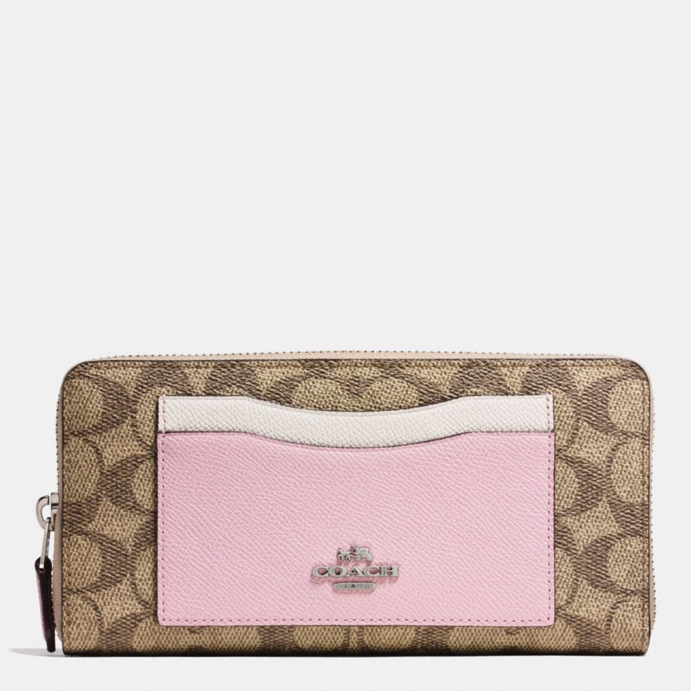 1. COACH f53749 - ACCORDION ZIP WALLET IN COLORBLOCK SIGNATURE - SILVER/KHAKI/PETAL