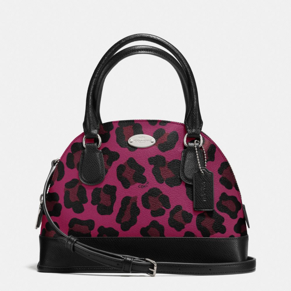 COACH F36219 - MINI CORA DOMED SATCHEL IN OCELOT PRINT COATED CANVAS - SILVER/CRANBERRY (click the link before for more detail)