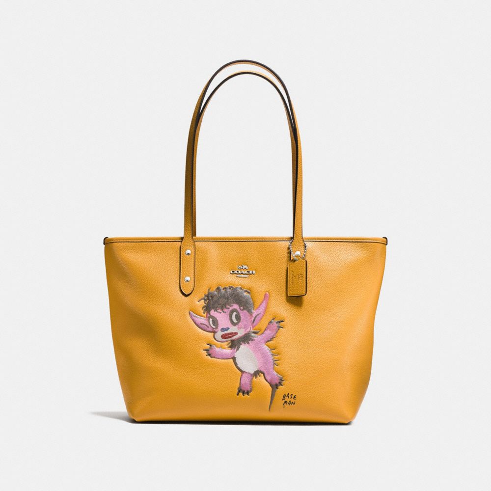 1. COACH f57729 - BASEMAN X COACH BUDDY BOY CITY ZIP TOTE IN PEBBLE LEATHER - SILVER/MUSTARD