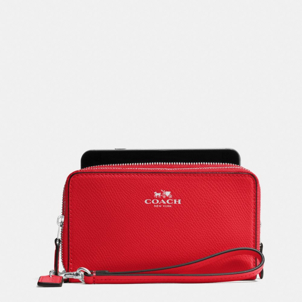 1. COACH f57467 - DOUBLE ZIP PHONE WALLET IN CROSSGRAIN LEATHER - SILVER/BRIGHT RED