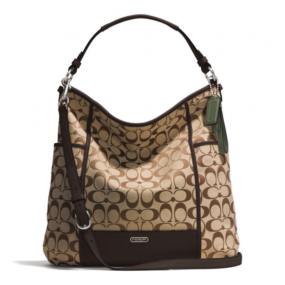 COACH F30341 - PARK SIGNATURE HOBO - SILVER/KHAKI/MAHOGANY - HANDBAGS