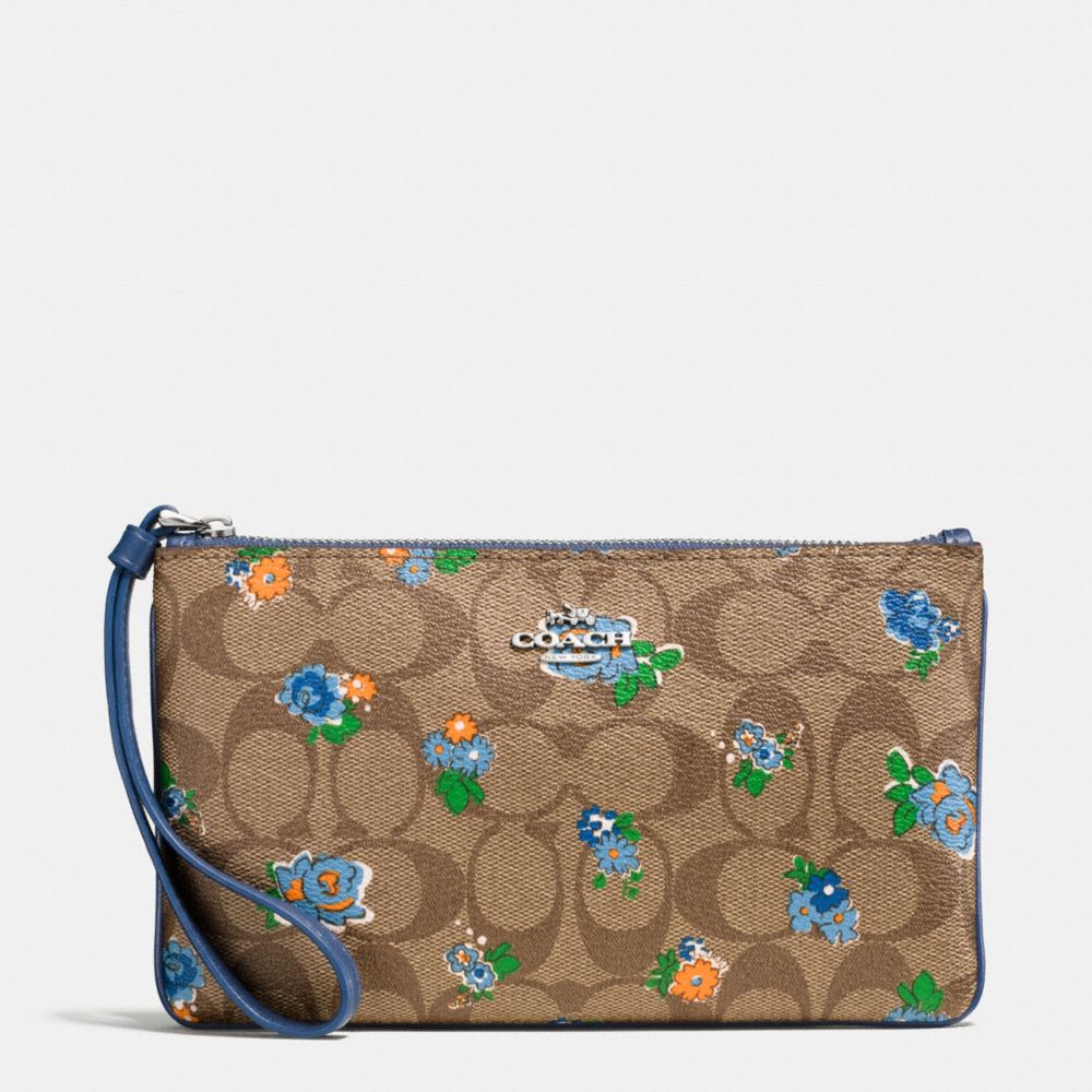 1. COACH f56505 - LARGE WRISTLET IN FLORAL LOGO PRINT COATED CANVAS - SILVER/KHAKI BLUE MULTI