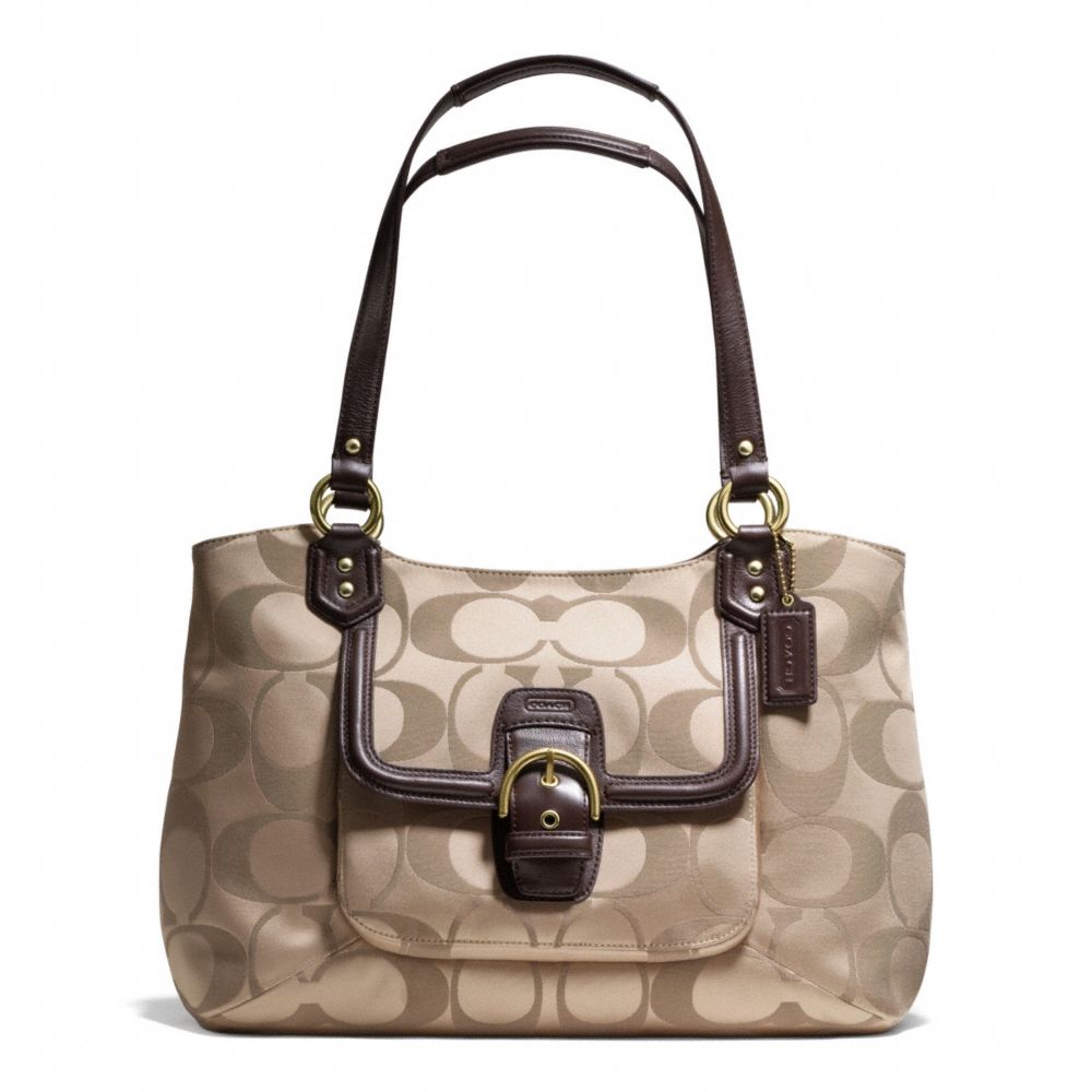 COACH F25294 - CAMPBELL SIGNATURE BELLE CARRYALL - BRASS/KHAKI/MAHOGANY - HANDBAGS