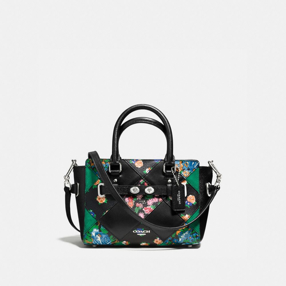1. COACH f57610 - MINI BLAKE CARRYALL IN FLORAL PATCHWORK LEATHER - SILVER/BLACK MULTI