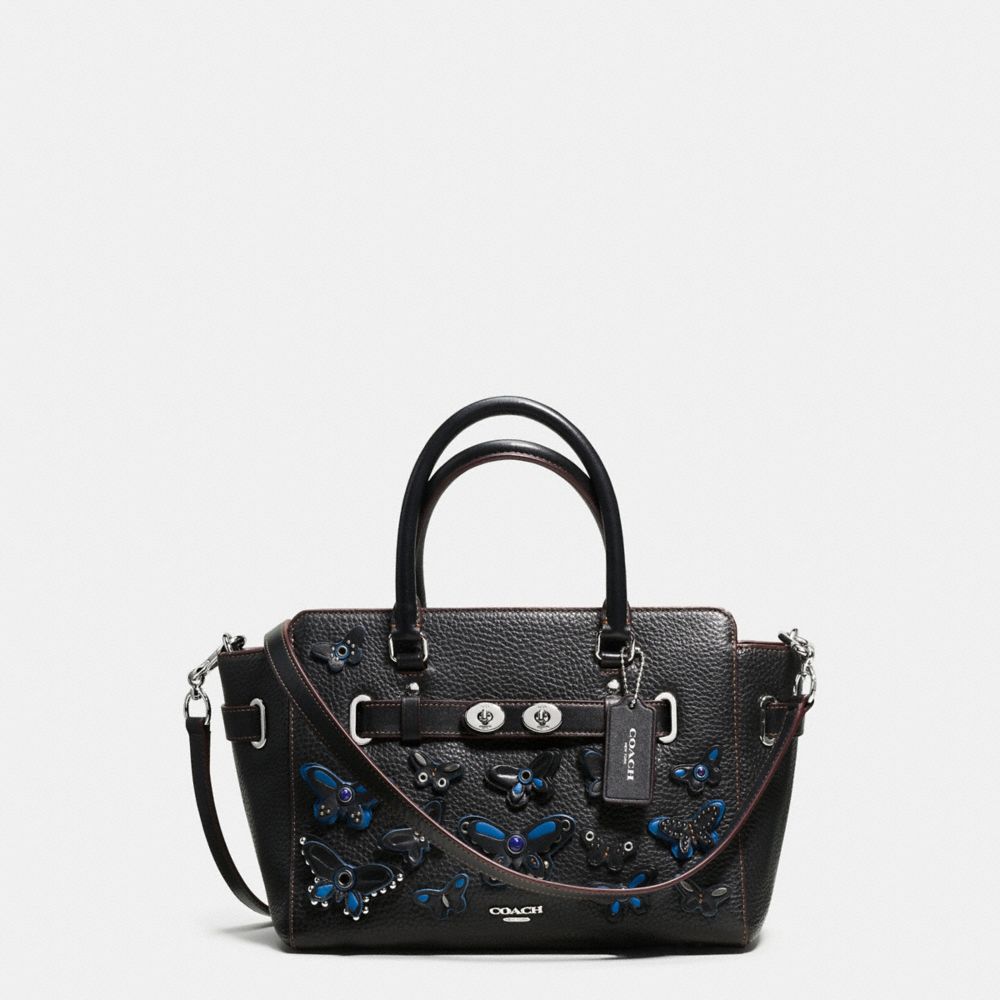 54. COACH f59810 - MINI BLAKE CARRYALL IN PEBBLE LEATHER WITH ALL OVER BUTTERFLY APPLIQUE - SILVER/BLACK