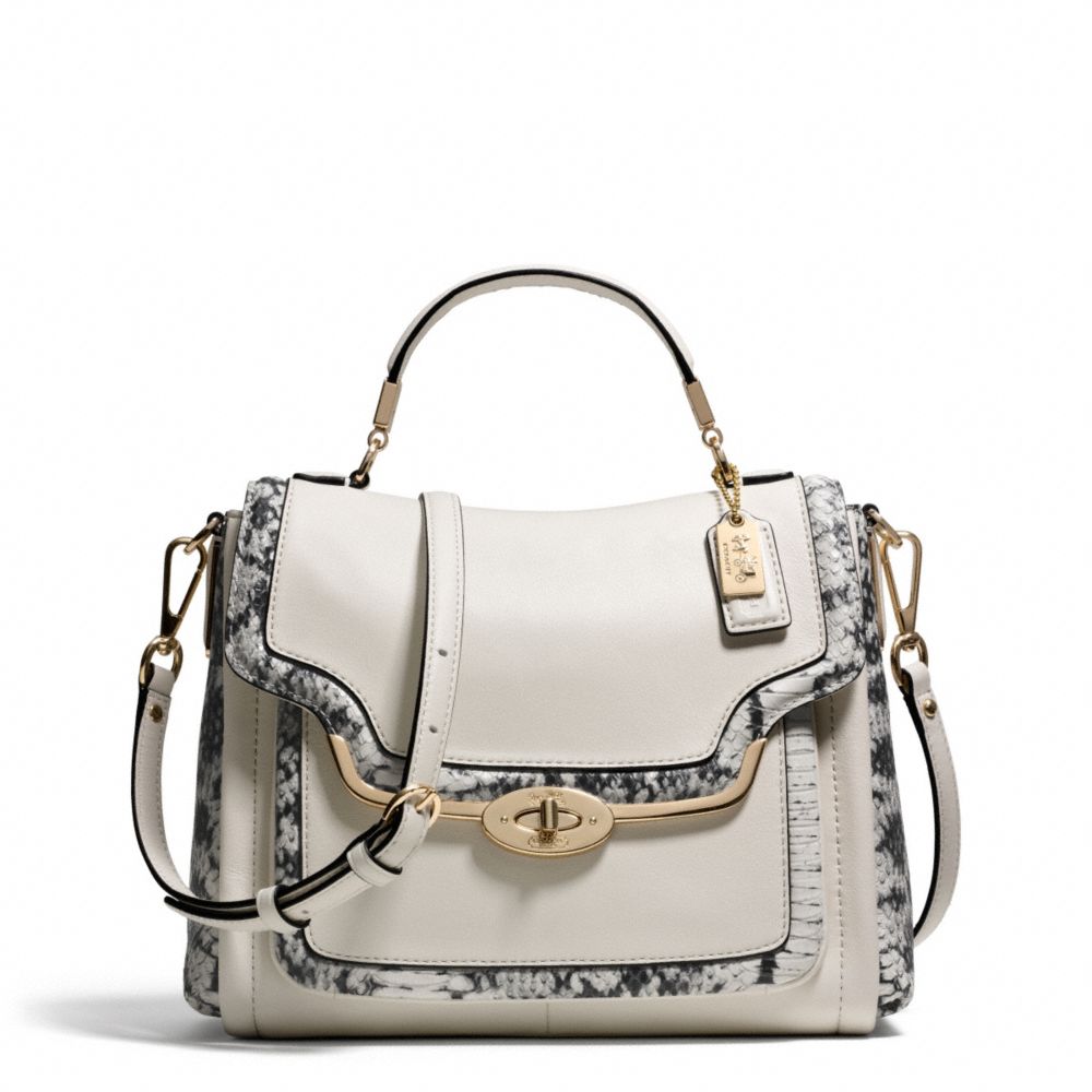 COACH F27849 - MADISON TWO-TONE PYTHON EMBOSSED SMALL SADIE FLAP SATCHEL - LIGHT GOLD/PARCHMENT (click the link before for more detail)