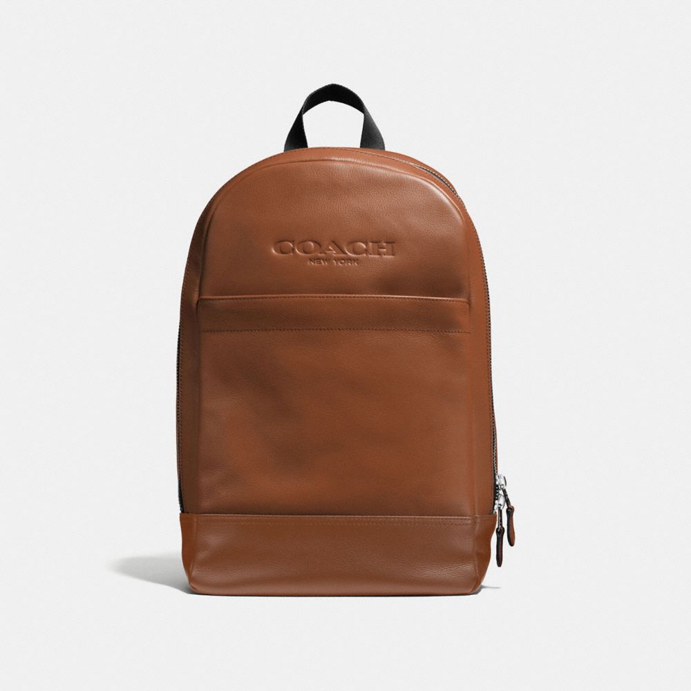 COACH F54135 - CHARLES SLIM BACKPACK IN SPORT CALF LEATHER - DARK-SADDLE - HANDBAGS