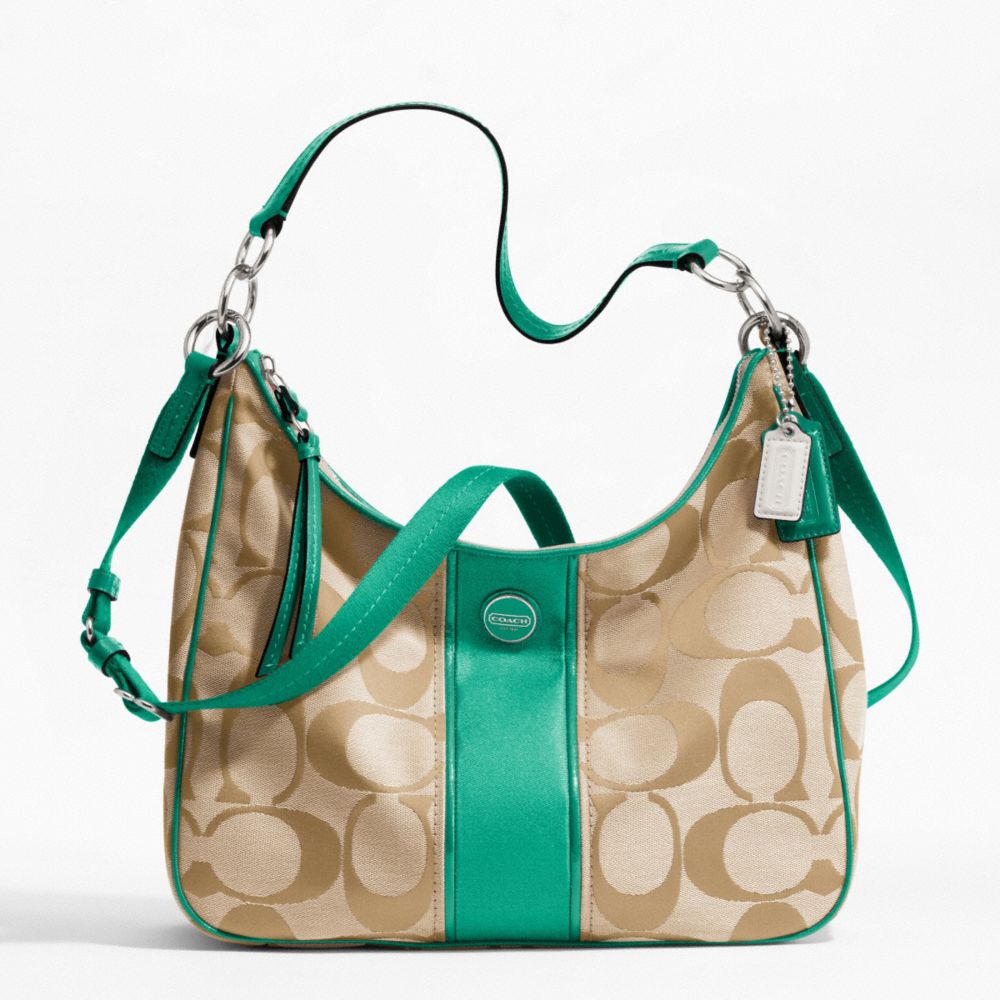 COACH F21873 - SIGNATURE STRIPE CONVERTIBLE HOBO - SILVER/LT KHAKI/BRIGHT JADE (click the link before for more detail)