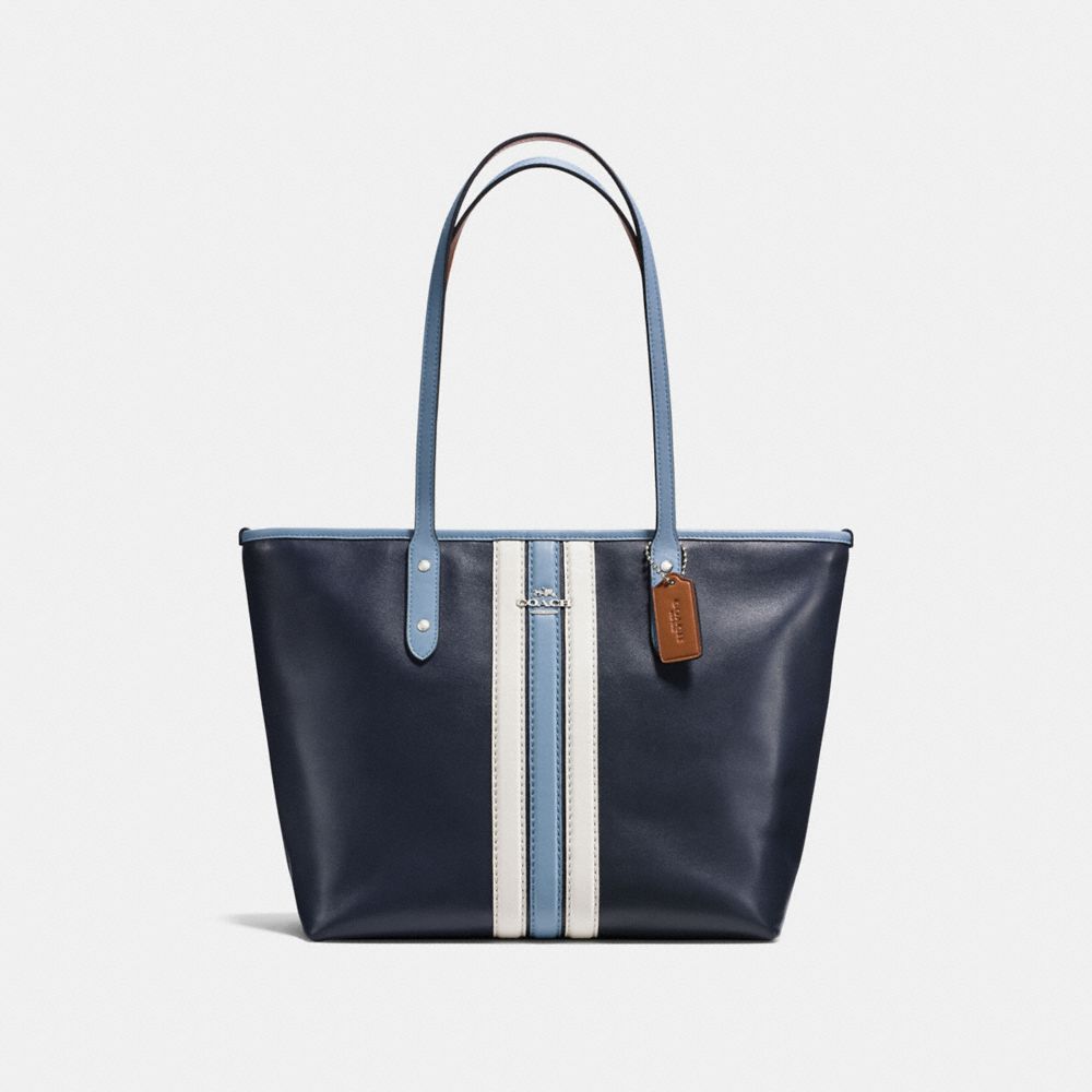 1. COACH f59456 - CITY ZIP TOTE IN NATURAL REFINED LEATHER WITH VARSITY STRIPE - SILVER/MIDNIGHT