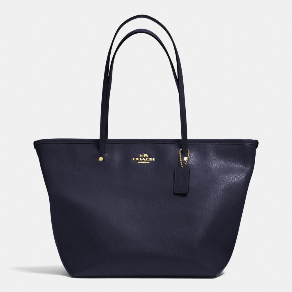 COACH F34103 - STREET ZIP TOTE IN LEATHER - LIGHT-GOLD/MIDNIGHT - HANDBAGS