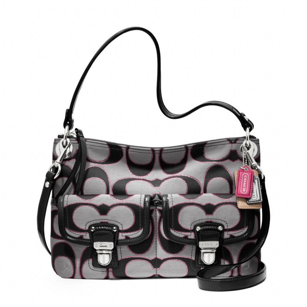 COACH F18980 - POPPY METALLIC SIGNATURE SATEEN HIPPIE - SILVER/MOONLIGHT/PK SCARLET (click the link before for more detail)