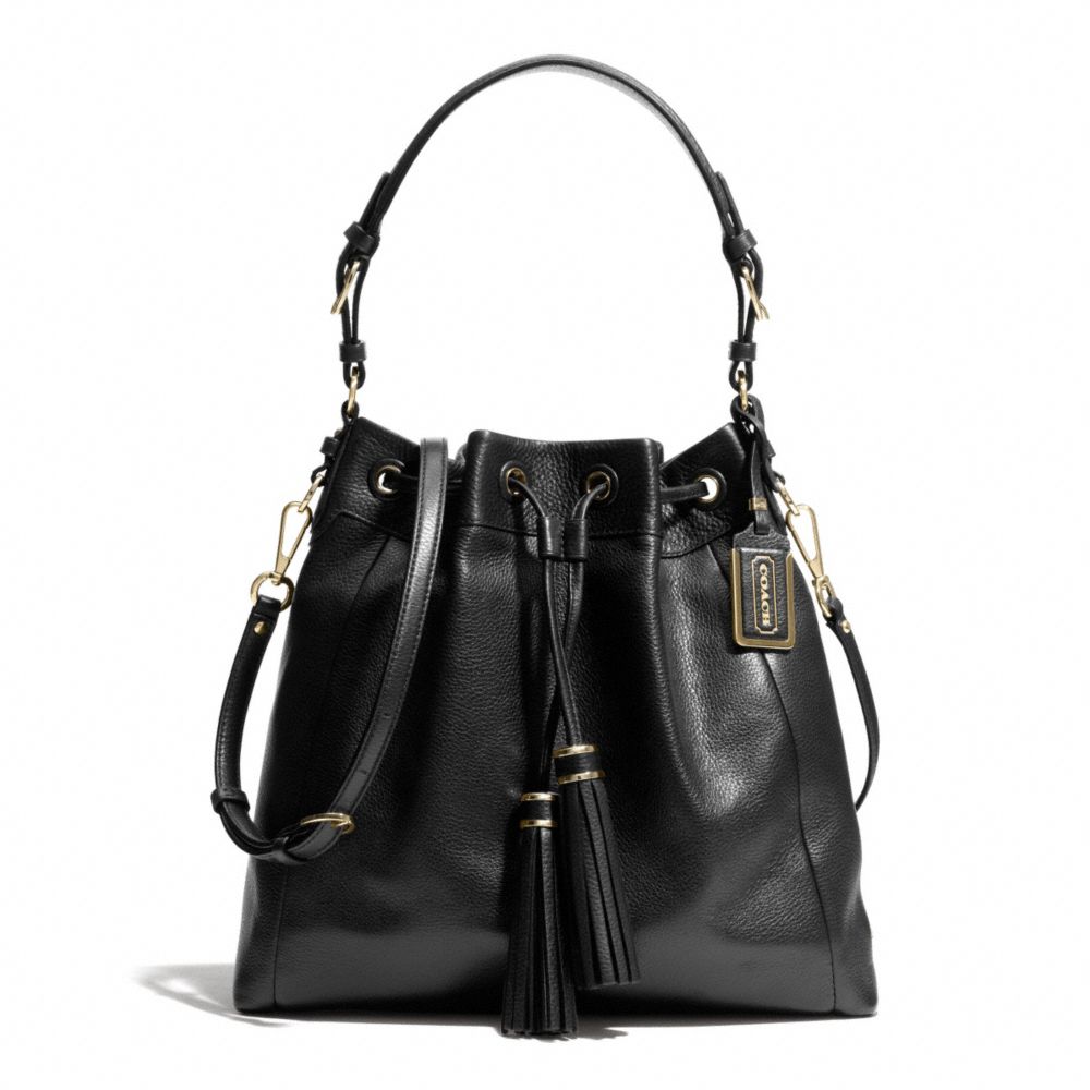 COACH F28378 - MADISON LEATHER PINNACLE DRAWSTRING SHOULDER BAG - LIGHT-GOLD/BLACK - HANDBAGS