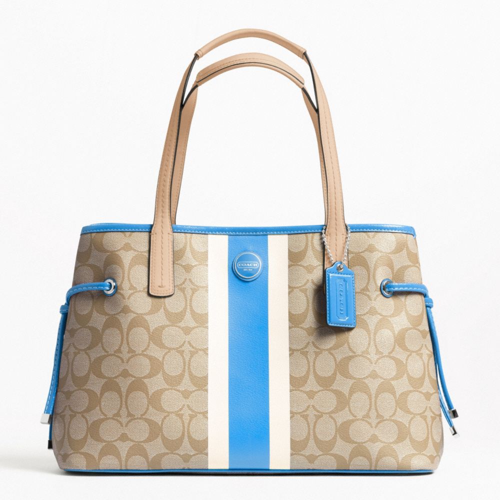 COACH F22908 - SIGNATURE STRIPE PVC STRIPE CARRYALL - SILVER/LT-KHAKI/BRIGHT-SKY - HANDBAGS