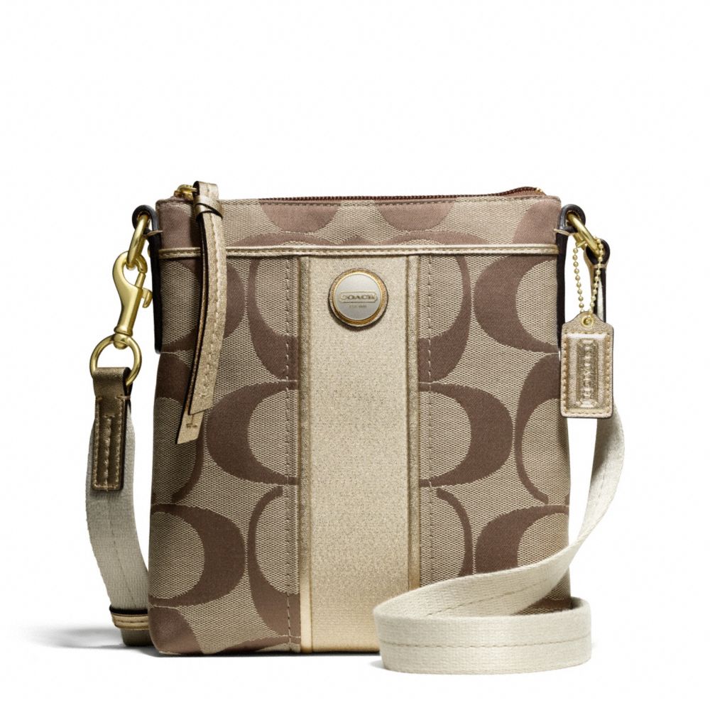 COACH F48806 - SIGNATURE STRIPE SWINGPACK - BRASS/KHAKI/GOLD - HANDBAGS
