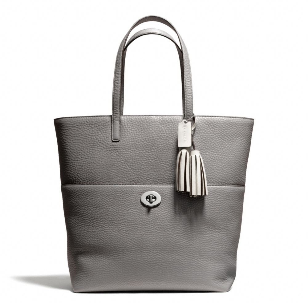 COACH F26477 - PEBBLED LEATHER TURNLOCK TOTE - SILVER/GRAPHITE (click the link before for more detail)