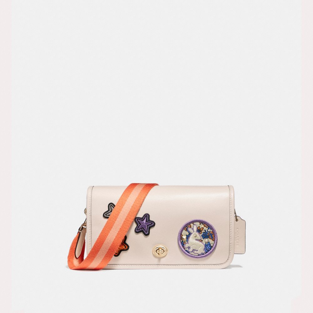 1. COACH f20913 - PENNY CROSSBODY IN REFINED CALF LEATHER WITH VARSITY PATCHES AND WEBBED STRAP - LIGHT GOLD/CHALK
