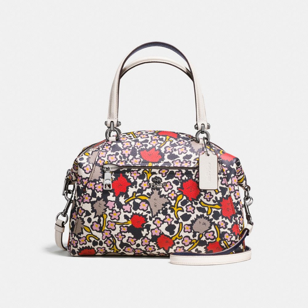 1. COACH f58876 - PRAIRIE SATCHEL IN POLISHED PEBBLE LEATHER WITH FLORAL PRINT - DARK GUNMETAL/CHALK YANKEE FLORAL