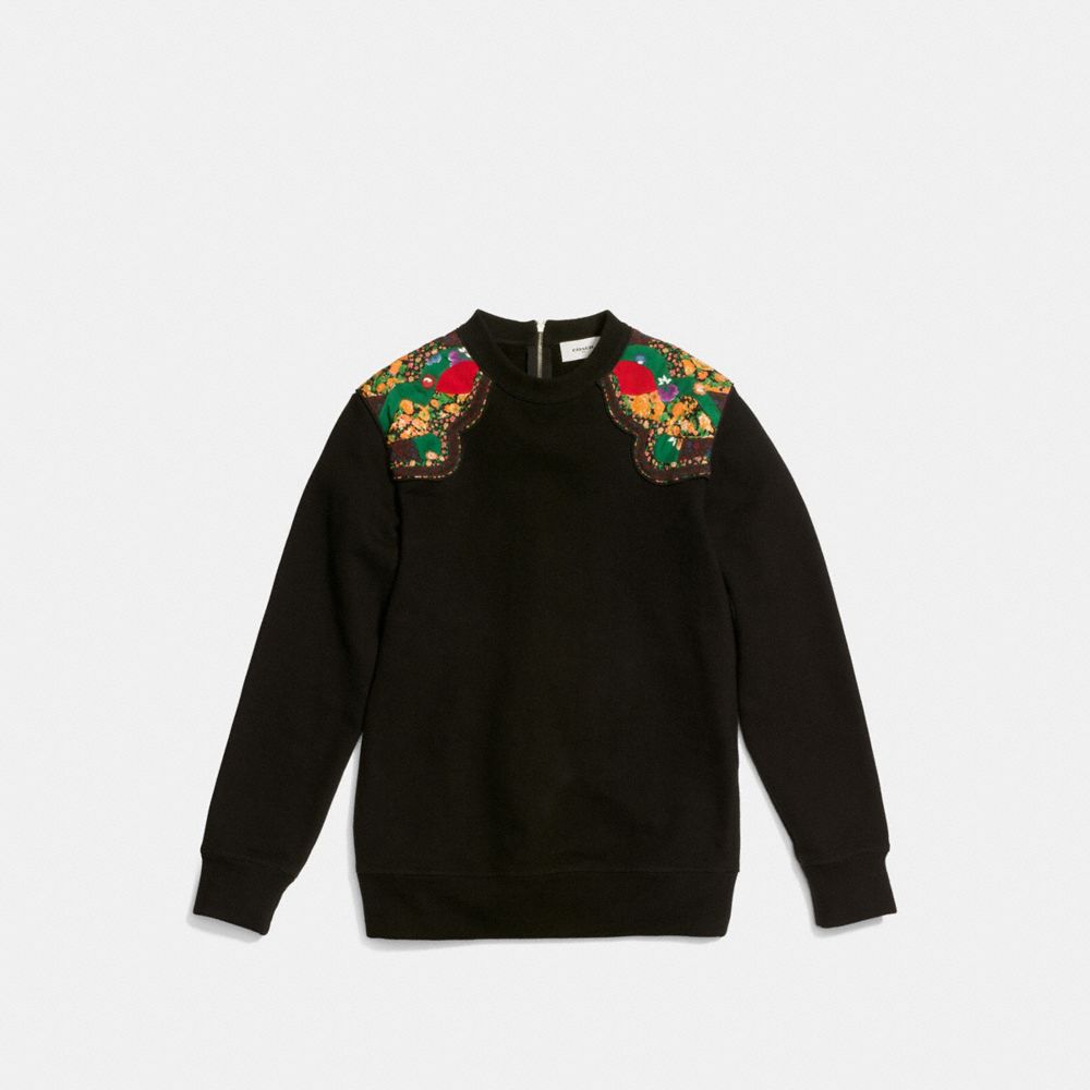 18. COACH f87094 - CROSSBODY POUCH IN RANCH FLORAL PRINT NYLON - BLACK ANTIQUE NICKEL/BRIGHT RED