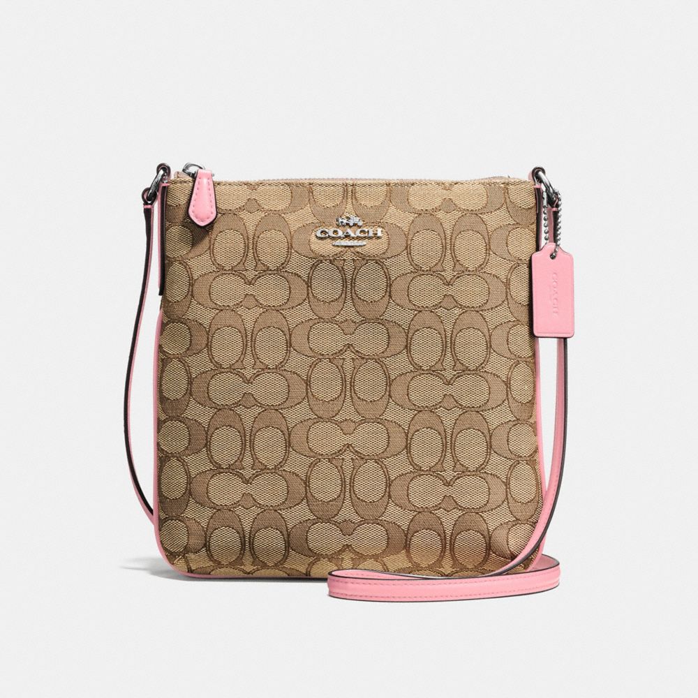 1. COACH f58421 - NORTH/SOUTH CROSSBODY IN OUTLINE SIGNATURE JACQUARD - SILVER/KHAKI/BLUSH