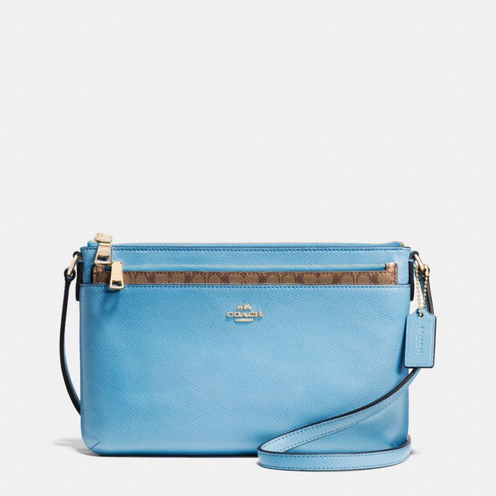 COACH F52881 - EAST/WEST POP CROSSBODY IN CROSSGRAIN LEATHER - IMITATION-GOLD/BLUEJAY - HANDBAGS