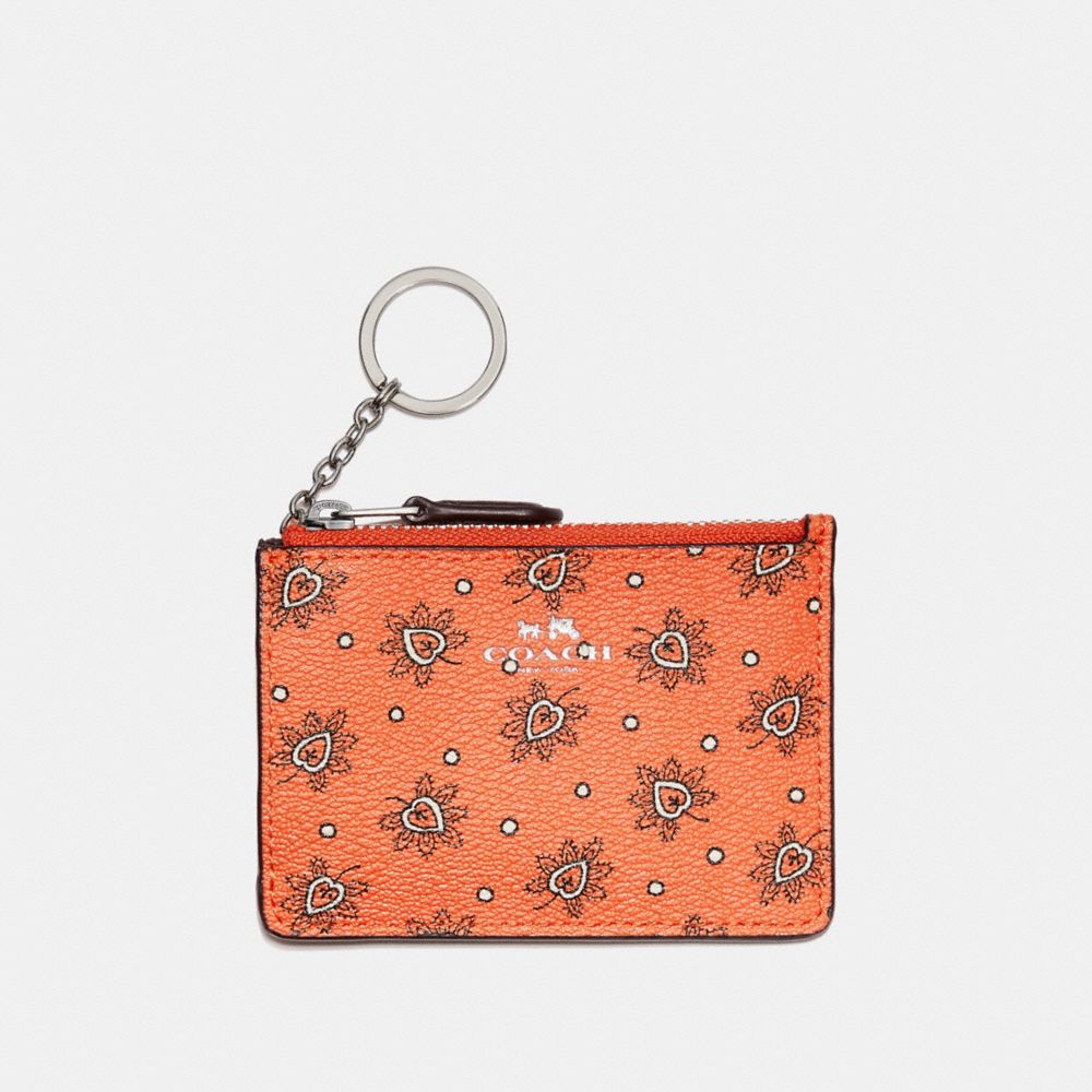 1. COACH f11849 - MINI SKINNY ID CASE IN FOREST BUD PRINT COATED CANVAS - SILVER/CORAL MULTI