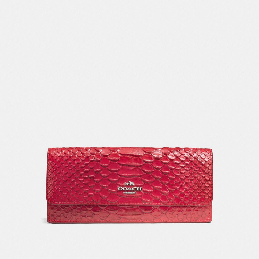 1. COACH f53734 - SOFT WALLET IN SNAKE EMBOSSED LEATHER - SILVER/TRUE RED