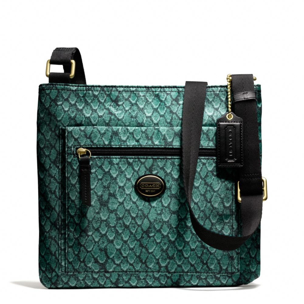 COACH F77481 - GETAWAY SNAKE PRINT FILE BAG - BRASS/EMERALD (click the link before for more detail)