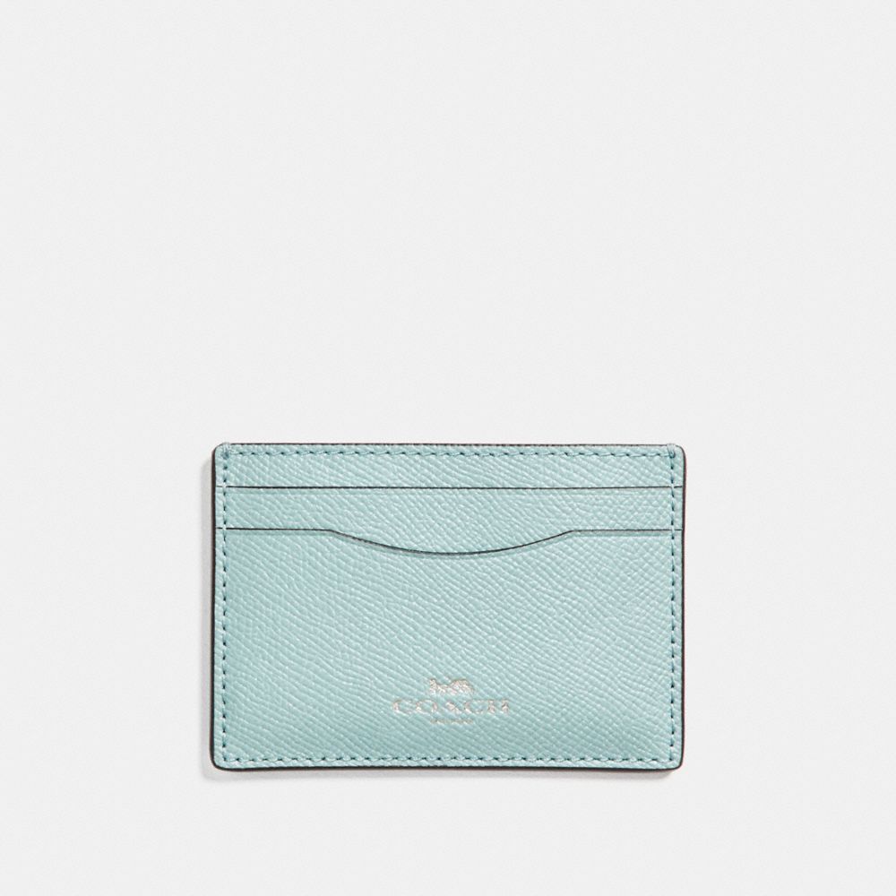 1. COACH f15565 - FLAT CARD CASE IN GLITTER CROSSGRAIN LEATHER - SILVER/AQUA