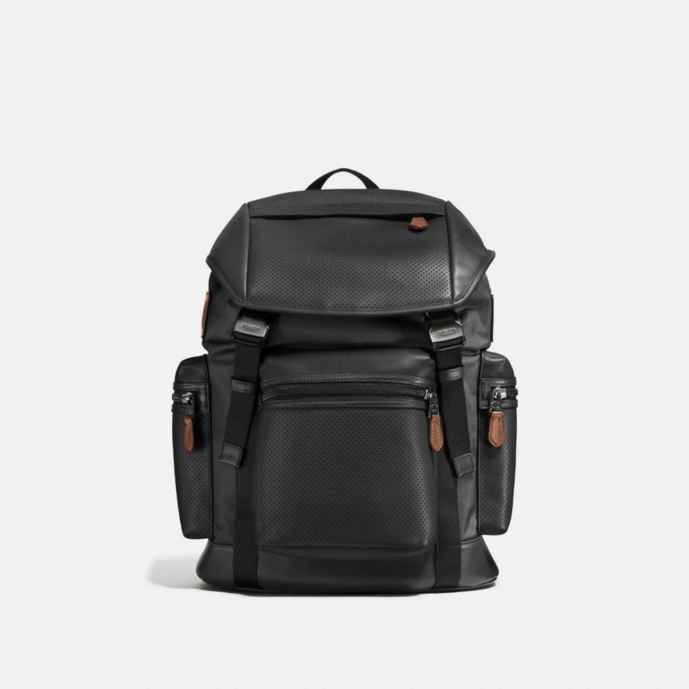 1. COACH f57477 - TERRAIN TREK PACK IN PERFORATED MIXED MATERIALS - BLACK/DARK SADDLE