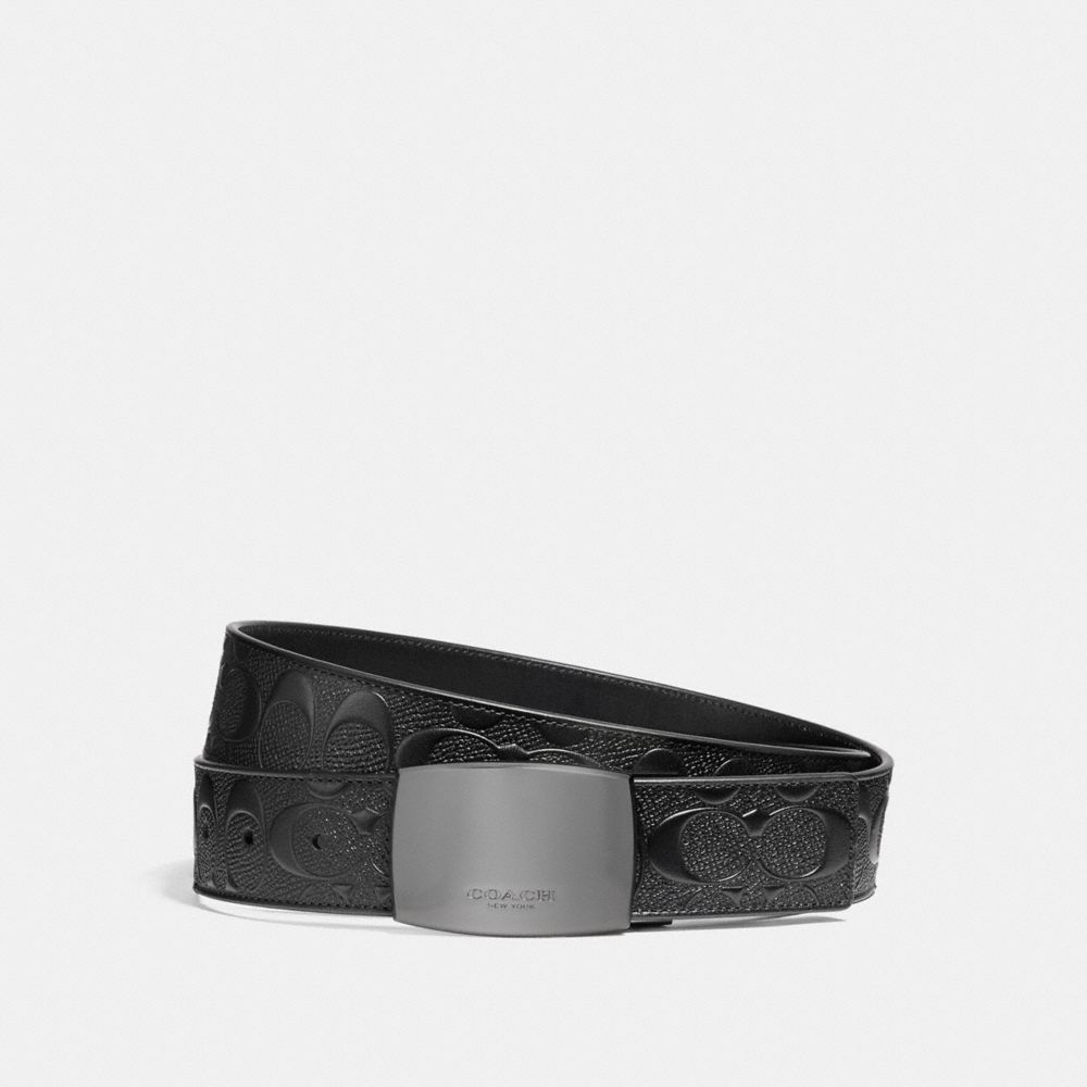 1. COACH f12026 - WIDE PLAQUE CUT-TO-SIZE REVERSIBLE SIGNATURE CROSSGRAIN LEATHER BELT - BLACK/BLACK