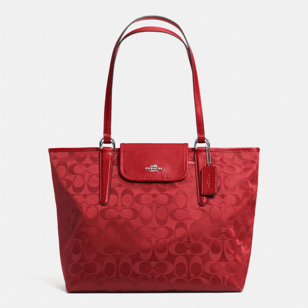 COACH F33475 - WARD TOTE IN SIGNATURE NYLON - SILVER/RED CURRANT (click the link before for more detail)