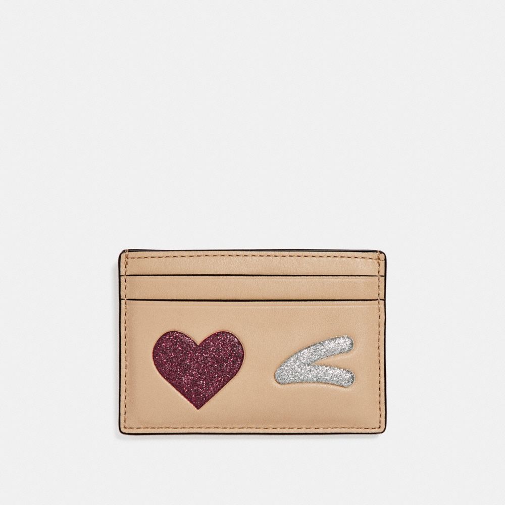 1. COACH f23760 - FLAT CARD CASE WITH GLITTER HEART WINK - LIGHT GOLD/MULTICOLOR 1