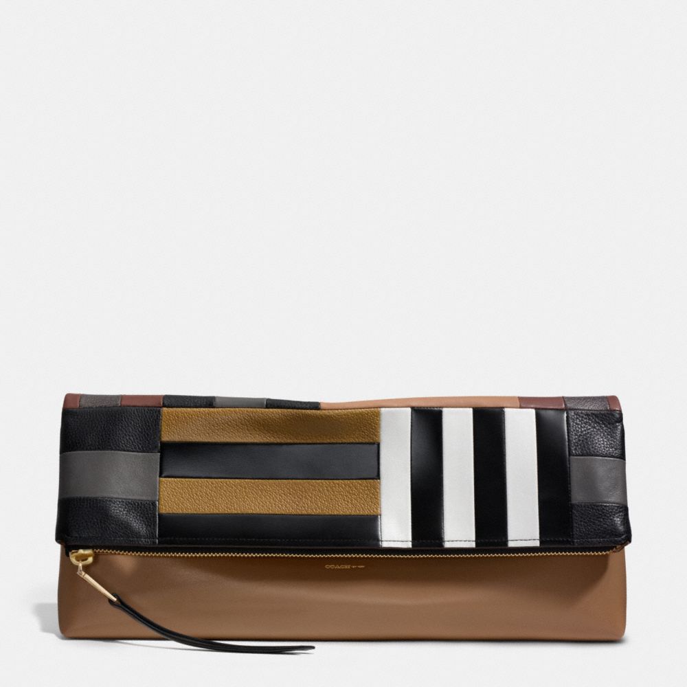 COACH F30372 - THE LARGE PATCHWORK CLUTCHABLE - GOLD/WALNUT-BLACK - HANDBAGS