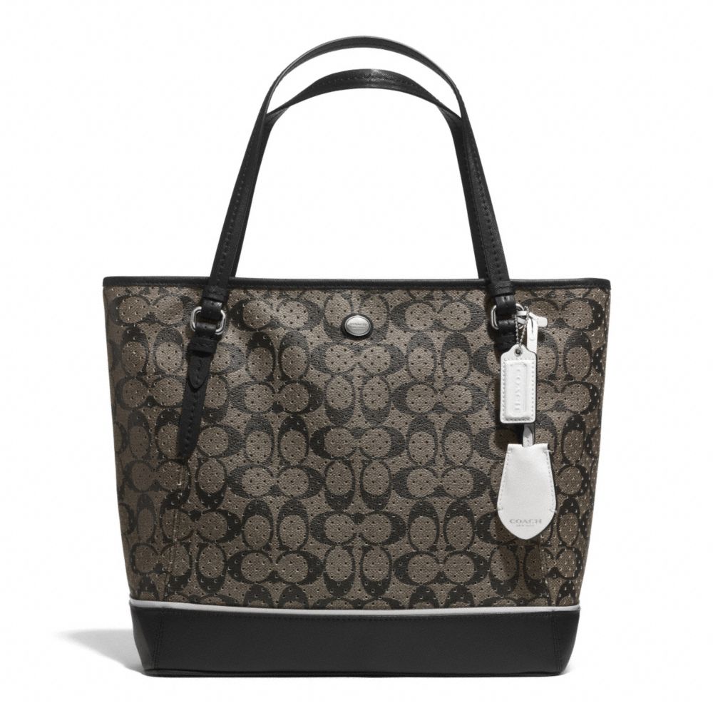 COACH F29886 - PEYTON PERFORATED PVC ZIP TOP TOTE - SILVER/BLACK/WHITE - HANDBAGS