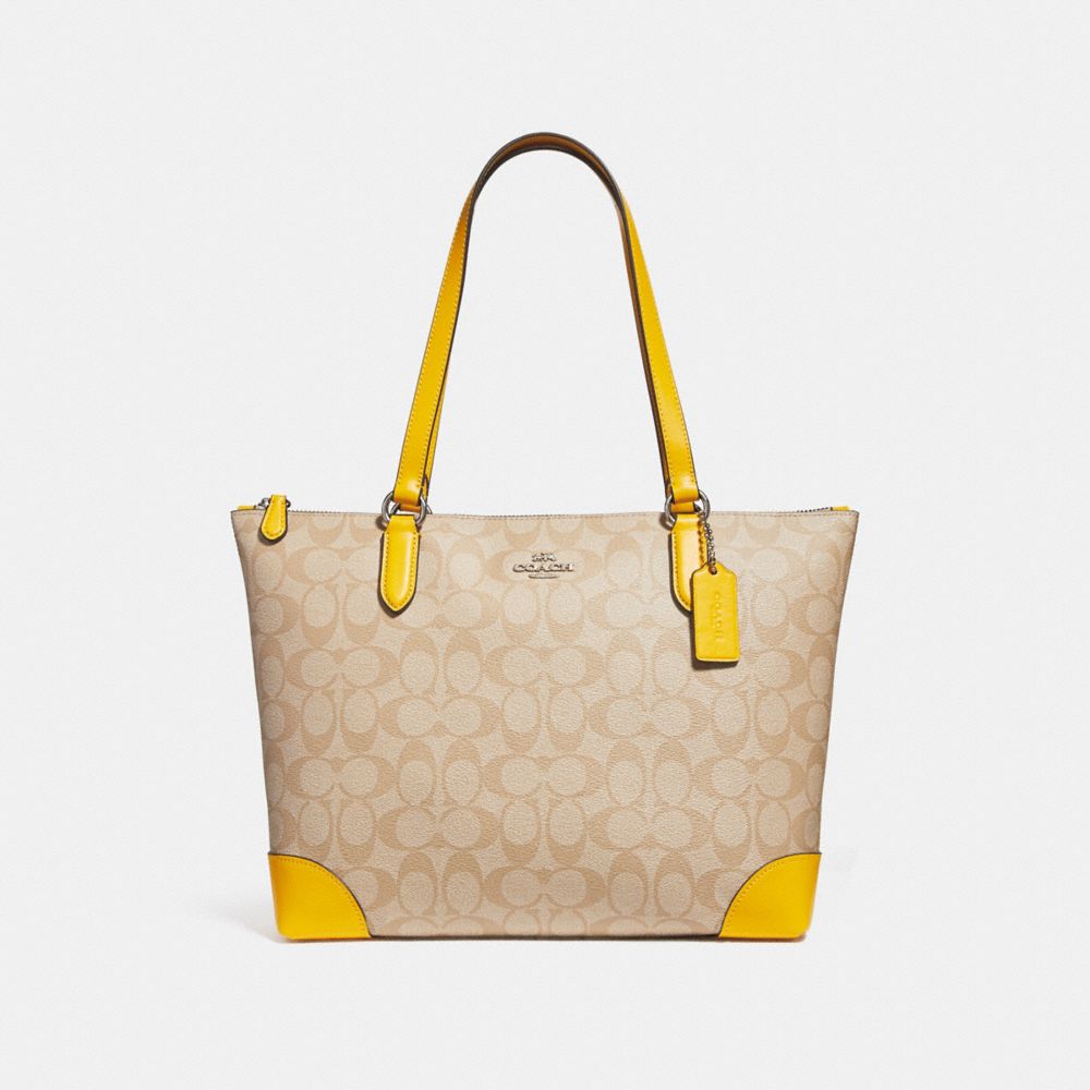 COACH F29208 - ZIP TOP TOTE IN SIGNATURE CANVAS - LIGHT-KHAKI/CANARY/SILVER - HANDBAGS
