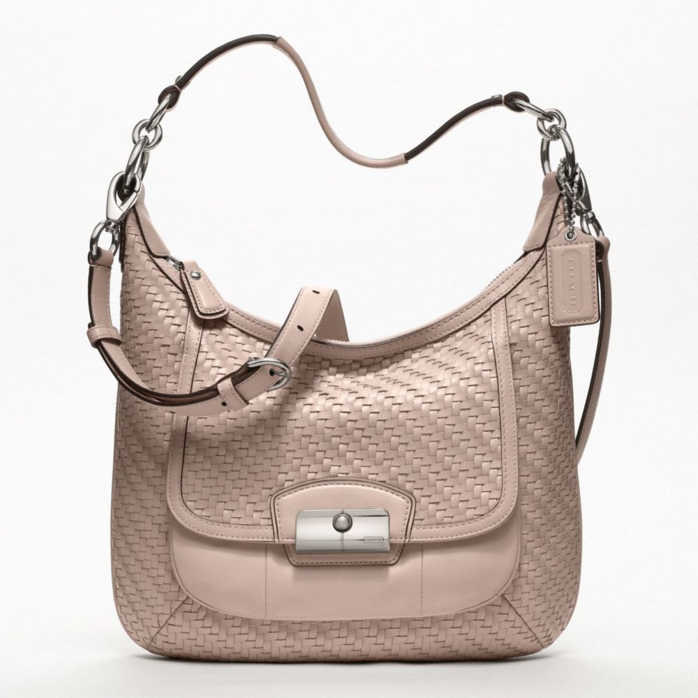COACH F19314 - KRISTIN WOVEN LEATHER HOBO - SILVER/TUBEROSE (click the link before for more detail)