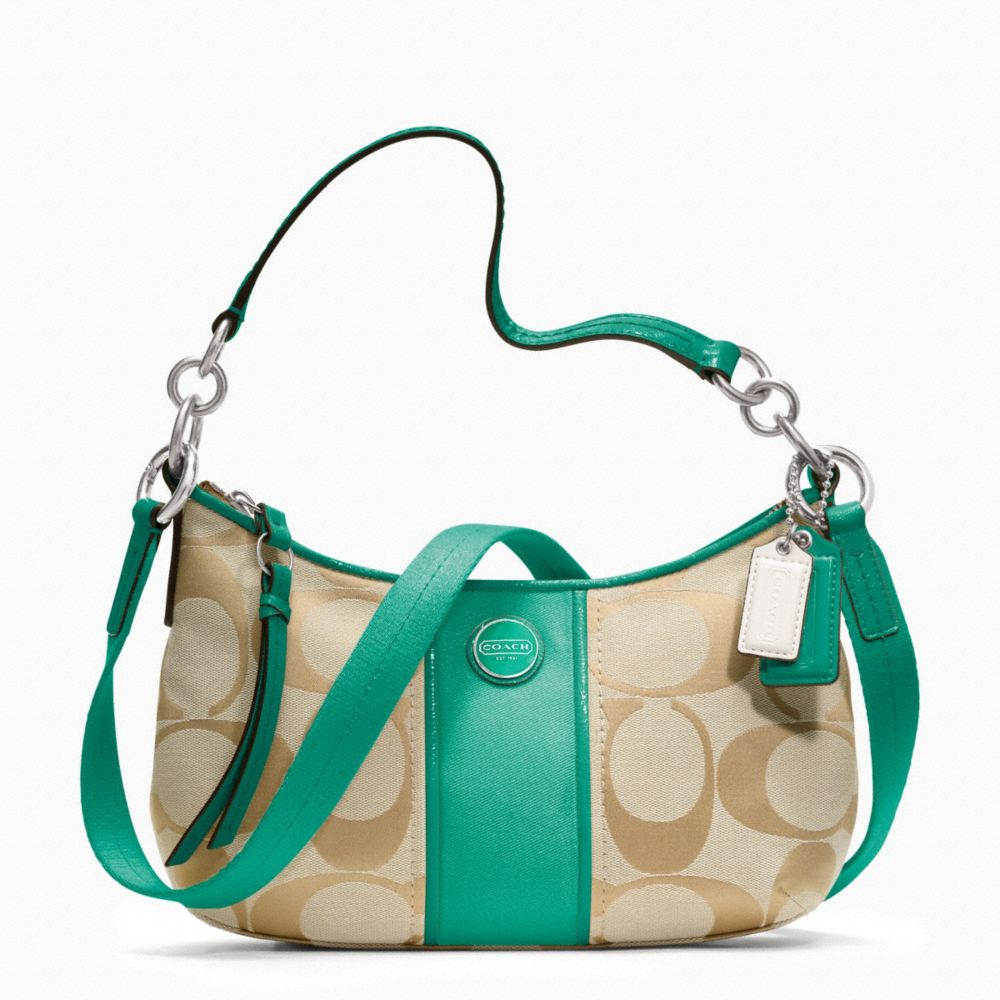 COACH F23544 - SIGNATURE STRIPE DEMI CROSSBODY - SILVER/LT KHAKI/BRIGHT JADE (click the link before for more detail)