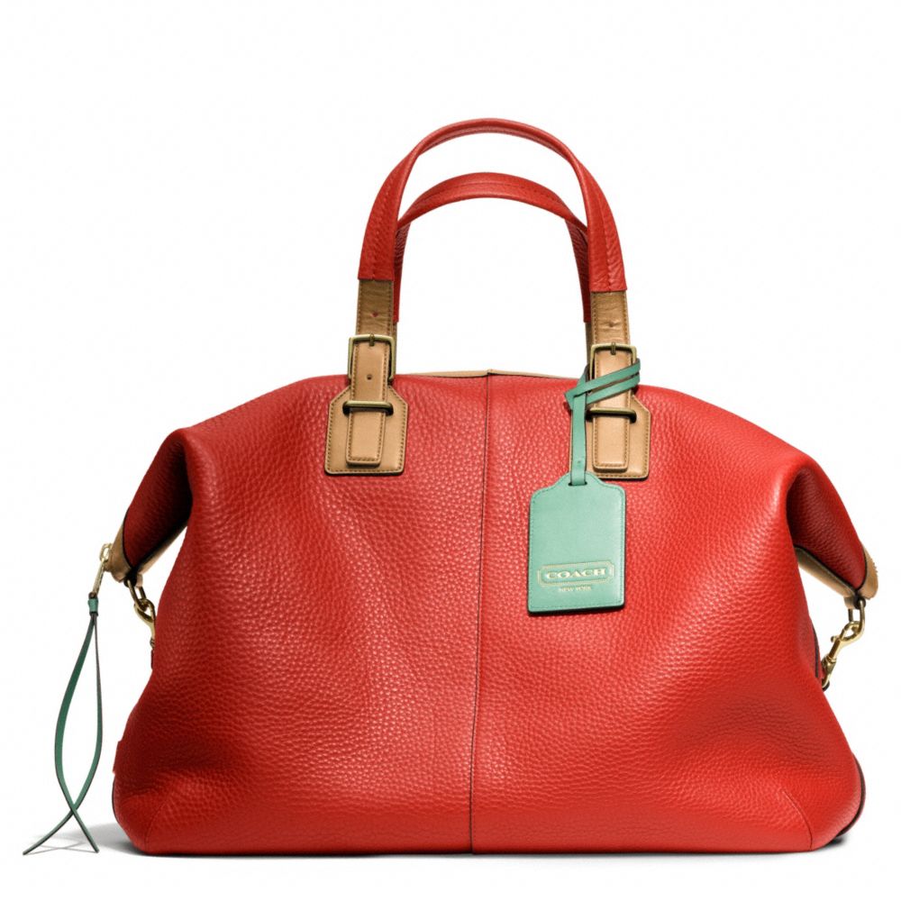 COACH F25308 - SOFT TRAVEL SATCHEL IN PEBBLED LEATHER - BRASS/VERMILLION - HANDBAGS
