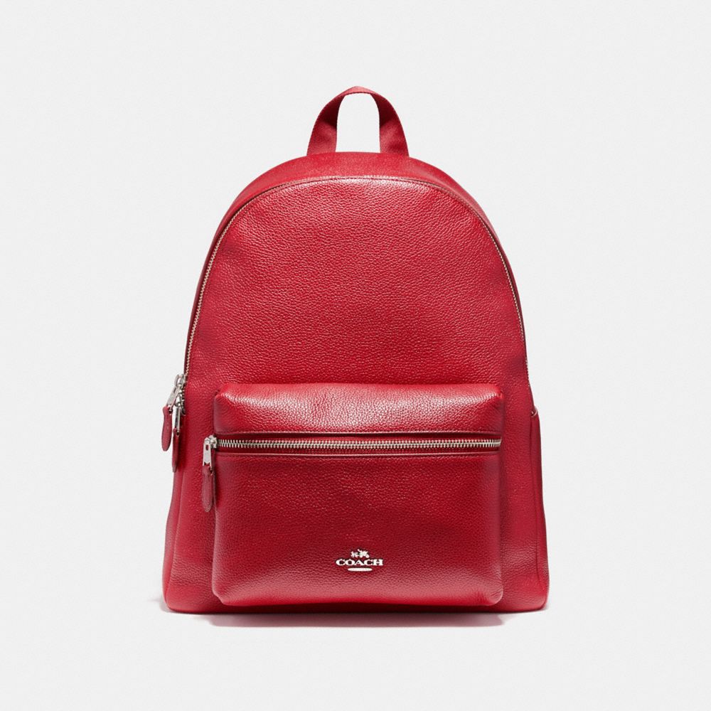 COACH F38288 - CHARLIE BACKPACK IN PEBBLE LEATHER - SILVER/TRUE-RED - HANDBAGS