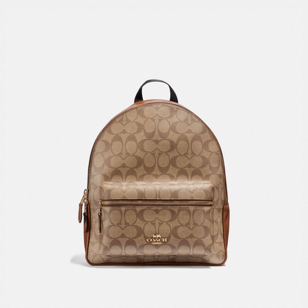 1. COACH f32200 - MEDIUM CHARLIE BACKPACK IN SIGNATURE CANVAS - KHAKI/SADDLE 2/light gold